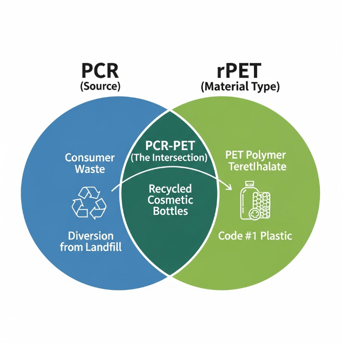 Dieser umfassende Leitfaden zielt darauf ab, die Beziehung zwischen PCR und rPET zu entmystifizieren, und bietet Kosmetikmarken, die eine erstellen möchten Umweltkosmetikflasche und umweltbewusste Verbraucher mit der nötigen Klarheit versorgen, um fundierte und wirkungsvolle Entscheidungen zu treffen. Wir werden beide Begriffe definieren, ihre Kernunterschiede analysieren, ihre Leistung analysieren und untersuchen, warum die Wahl des richtigen Materials für die Nachhaltigkeitsgeschichte Ihrer Marke wichtig ist.