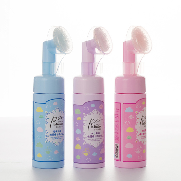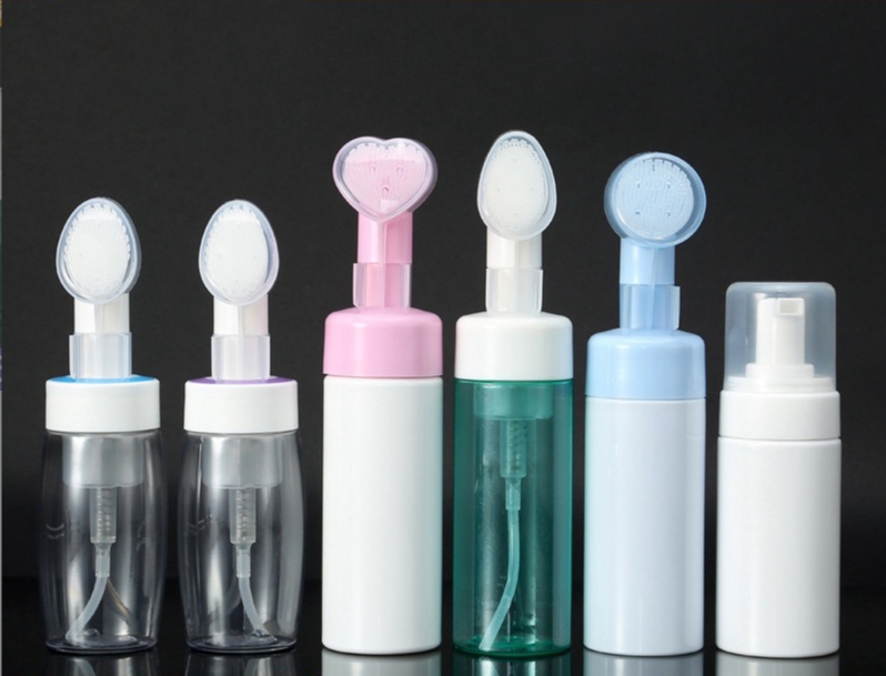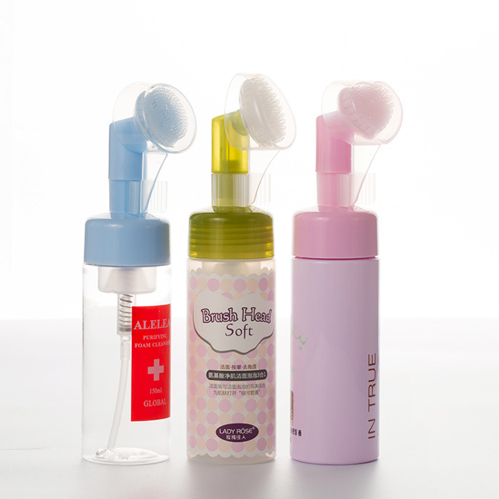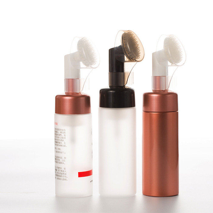 Weiche Silikonbürstenkopf-Schaumflasche, Gesichtsreiniger, Schäumflasche, Haustierpresse, Gesichtsreiniger, Mousse-Flasche, 100 ml, 120 ml, 150 ml, 200 ml, Die bescheidene Schaumflasche erfährt durch die Integration eines weichen Silikonbürstenkopfes ein transformatives Upgrade und sorgt so für ein einzigartig effektives Gesichtsreinigungserlebnis. Dieses innovative Design verwandelt flüssige Reinigungsmittel bei der Abgabe in einen reichhaltigen, samtigen Mikroschaum, der sofort aufgetragen und durch die sanften, hygienischen Silikonborsten auf die Haut einmassiert wird. Benutzer profitieren von einem gleichzeitigen zweistufigen Prozess: gründliche Reinigung, unterstützt durch die Fähigkeit des Schaums, Unreinheiten zu entfernen, und das sanfte physikalische Peeling und die Porenstimulation der Bürste. Es ist ideal für eine schnelle Erfrischung am Morgen oder eine gründliche Reinigung am Abend und bietet eine Spa-ähnliche Behandlung mühelos zu Hause, während die inhärente porenfreie Beschaffenheit von Silikon im Vergleich zu herkömmlichen Bürstenmaterialien eine hervorragende Hygiene gewährleistet.