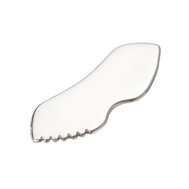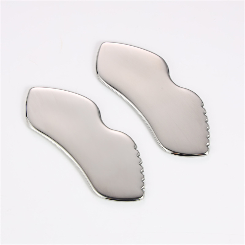Dies ist ein versandfertiges Guasha-Massagegerät aus 304 Edelstahl und robustem Guasha-Schabbrett aus Metall.