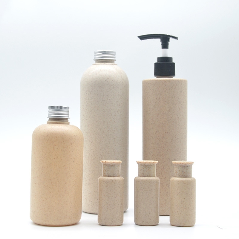 Dies ist eine leere kosmetische 30 ml, 100 ml, 250 ml, 300 ml, 500 ml Lotion, biologisch abbaubare Weizenstroh-Kunststoff-Körperbutter-Körpercreme-Shampoo-Flasche mit Deckel, die ein breites Anwendungsspektrum hat und hauptsächlich in Shampoo, Duschgel und anderen Pflegeprodukten verwendet wird.