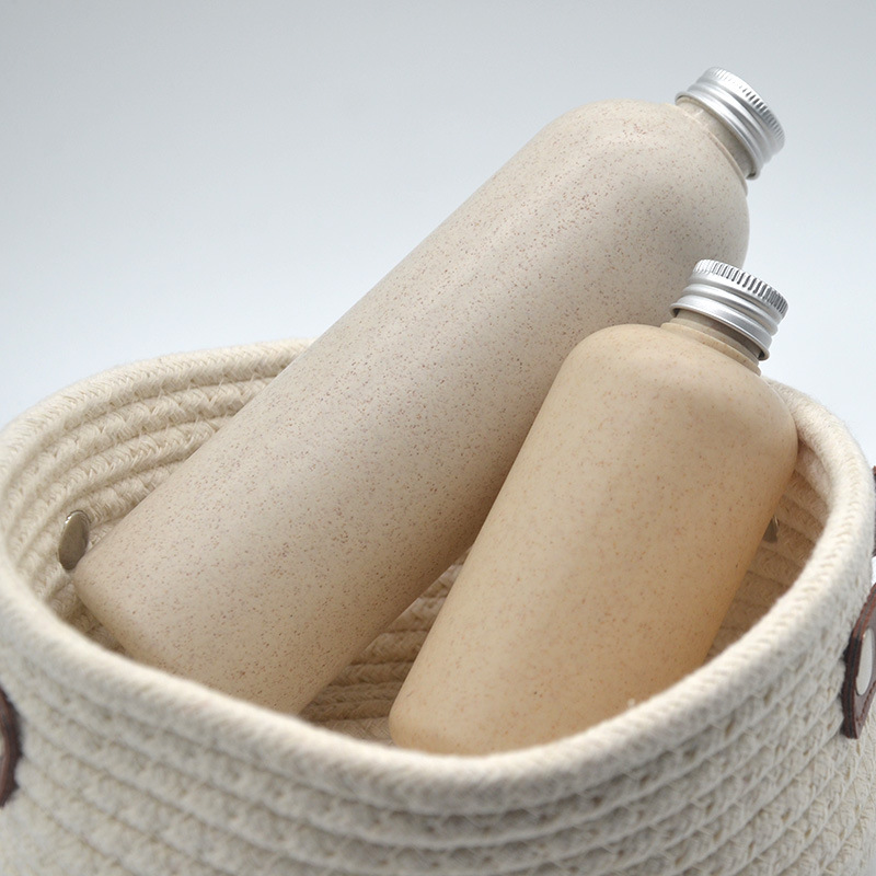 Diese leere kosmetische 30-ml-, 100-ml-, 250-ml-, 300-ml-, 500-ml-Lotion, biologisch abbaubare Weizenstroh-Kunststoff-Körperbutter-Körpercreme-Shampoo-Flasche mit Deckel hat eine natürliche Textur, um dem Produkt ein einfaches ästhetisches Gefühl zu verleihen, das sich von herkömmlichen Plastikflaschen unterscheidet und den Benutzern helfen kann, den Sinn für Rituale zu verstärken.